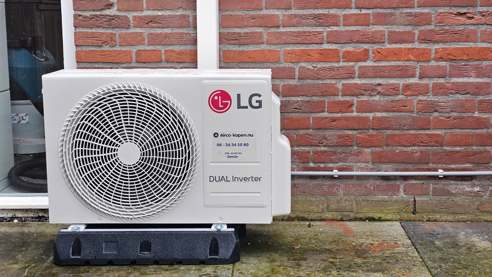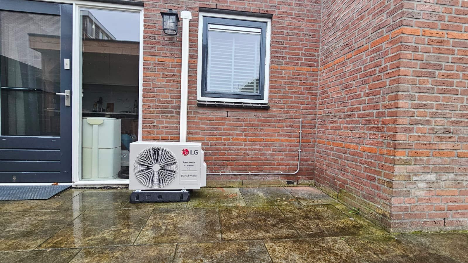 Buitenunit LG Dual Inverter airco op de grond bij woonhuis in Amersfoort