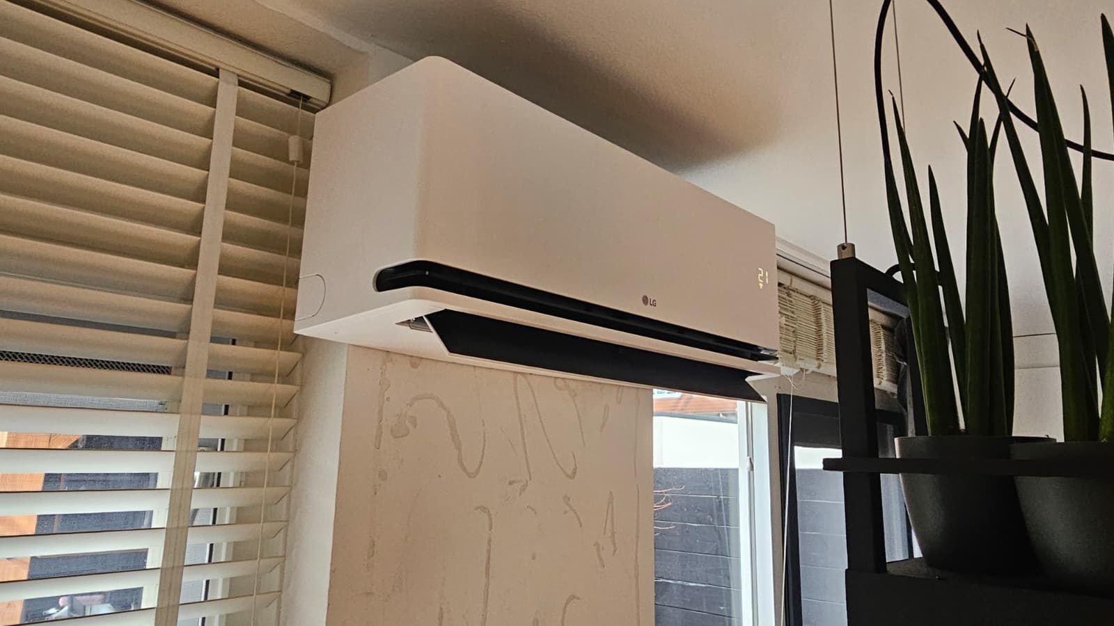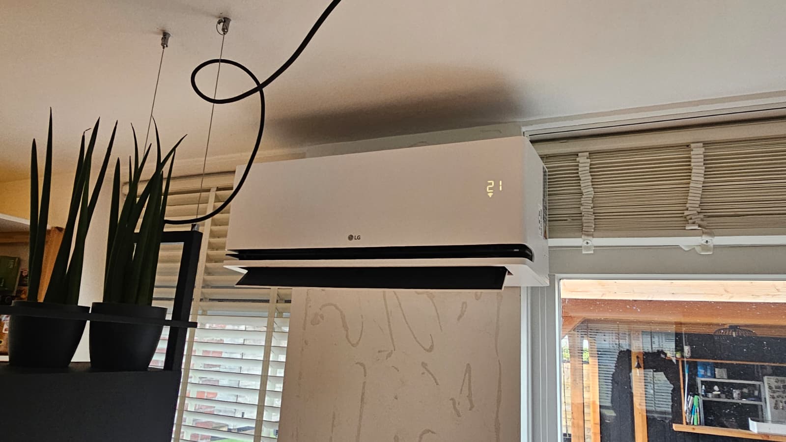In Amersfoort hebben wij in een woonhuis een LG DualCool AI Air Special Smart Inverter airco (3,5 kW) gemonteerd. De binnen-unit is geplaatst in de woonkamer en wordt vooral gebruikt om te verwarmen (voordeliger dan verwarmen met gas). En natuurlijk: in de zomer is dit systeem ook perfect om de woonkamer comfortabel te koelen.