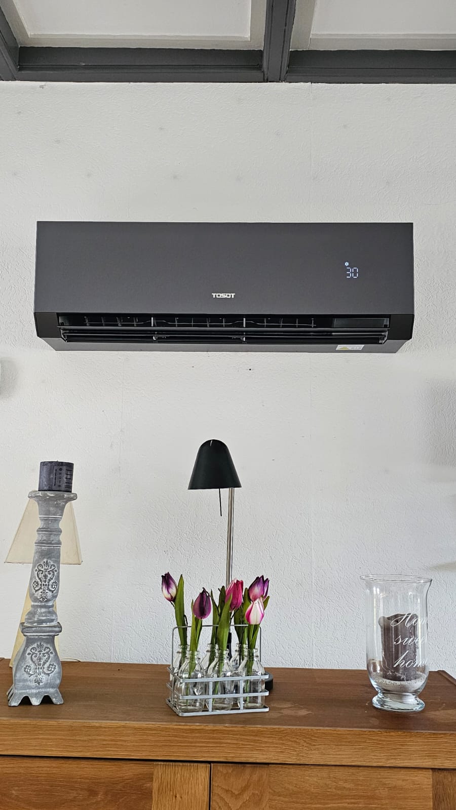 1x Tosot CLIVIA 5,0 kW in de woonkamer – ideaal voor krachtige koeling in de zomer én efficiënte verwarming in de winter.