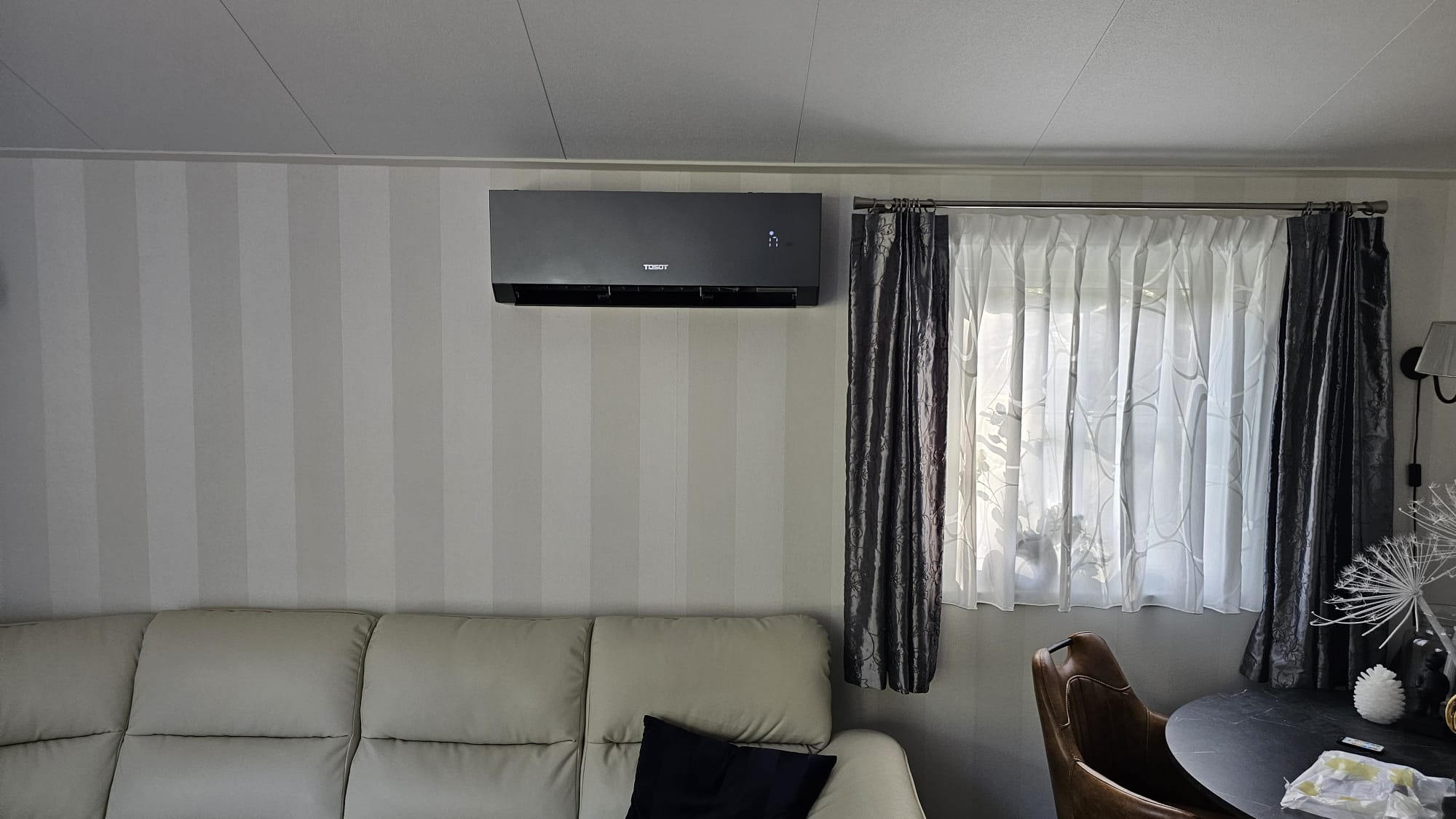 Op Camping Laarbrug in Vilsteren hebben wij in een chalet een Tosot Clivia Antraciet 2,5 kW airconditioning geplaatst. Een chalet of stacaravan warmt in de zomer vaak snel op en kan in de winter juist koud en vochtig aanvoelen. Met deze installatie geniet de eigenaar het hele jaar door van een comfortabel binnenklimaat: koelen, verwarmen én ontvochtigen in één systeem.